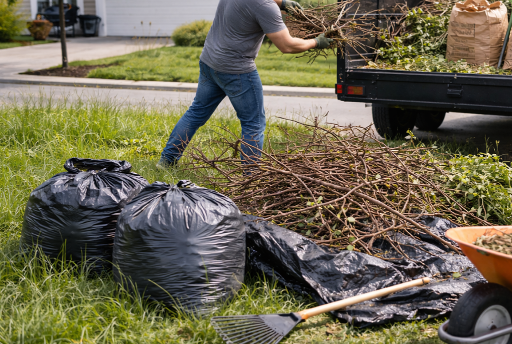 Yard waste, branches, dead plants, and general debris removal.